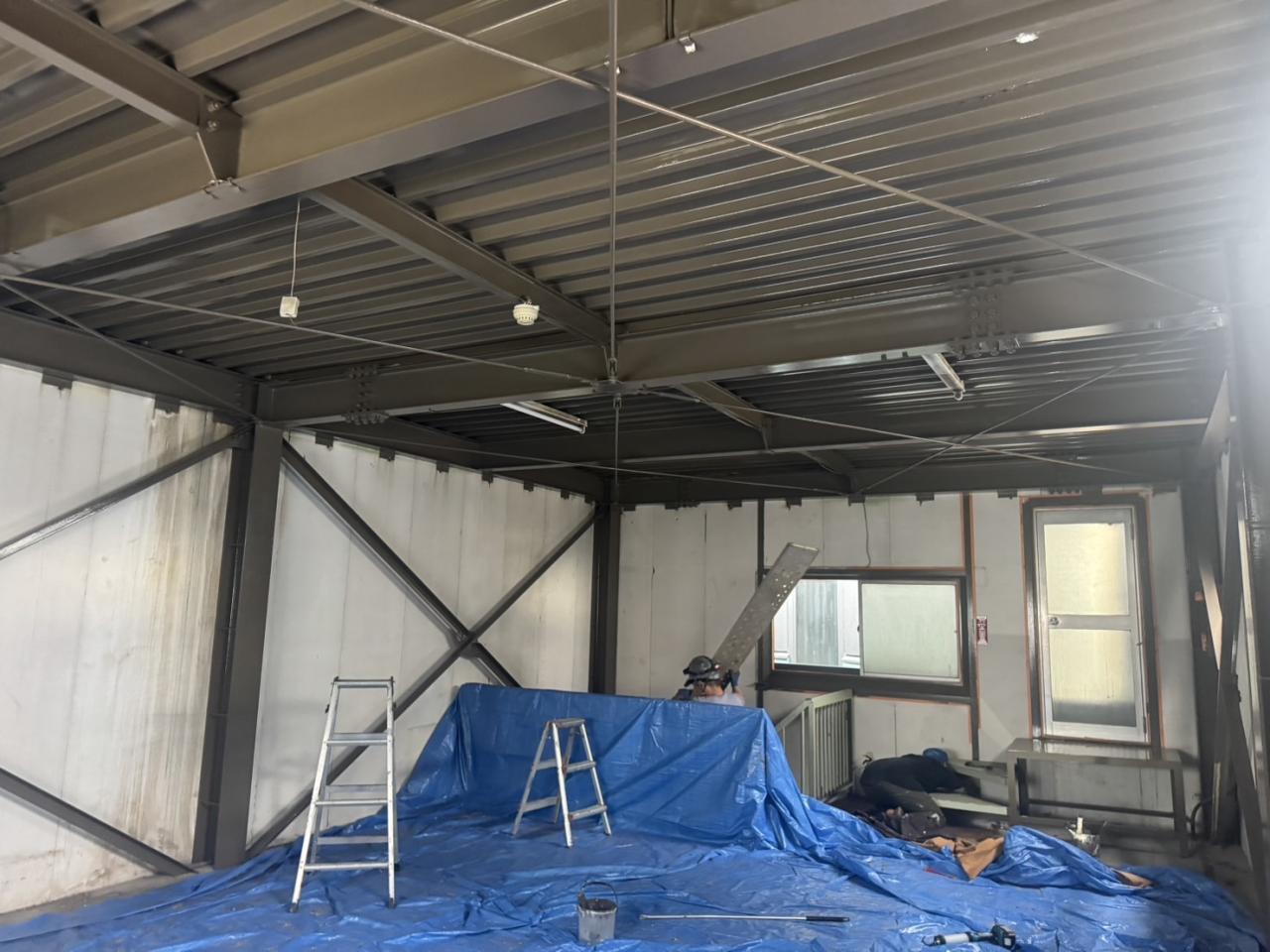 幕板塗装施工中